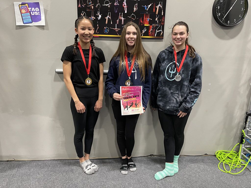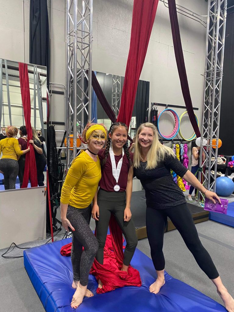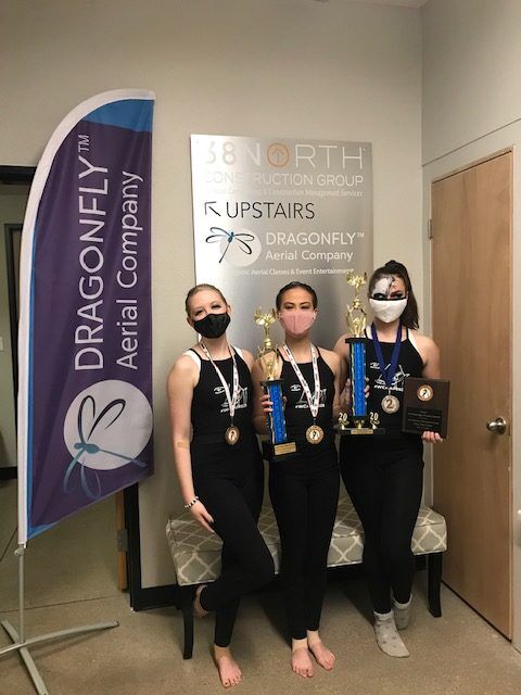 It is a great time to be a part of the DAC Competitive group. What does that look like? DAC Competitors are encouraged to be enrolled in two different disciplines weekly. Competitors must also be enrolled in a floor to air performance class which focuses on dance styles and technique. In addition, they must participate in our weekly competitive class which focuses on floor acrobatics, straps conditioning, character work and rehearsal of their competitive pieces. We strive for participation in one competition each quarter, (one or two virtual competitions and 2-3 in-person competitions per year, depending on where each artist is in their competitive journey. We wrap up our competitive season with the international Viva Fest competition in Las Vegas over Springs Break. We are discerning about which competitions we chose to participate in based on what value ads the competition provides like lectures and specialty workshops. We also look for competitions with judges that are known for their work in the industry and those that have input on hiring opportunities.